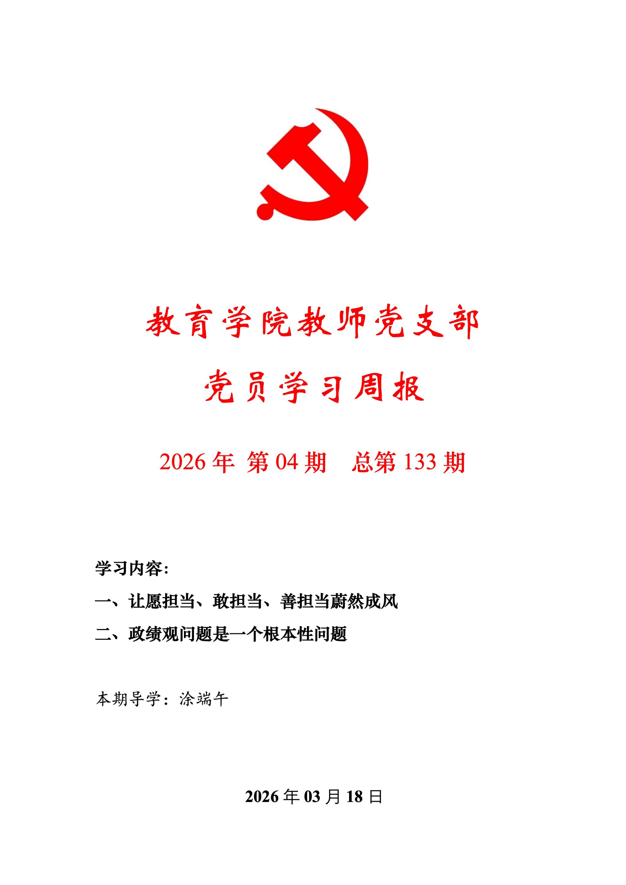 教育学院教师党支部党员学习周报(2026年第4期)