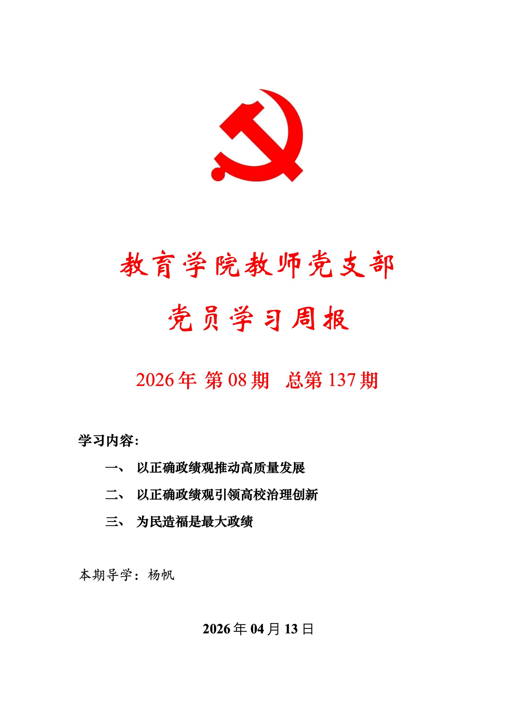 教育学院教师党支部党员学习周报(2026年第8期)