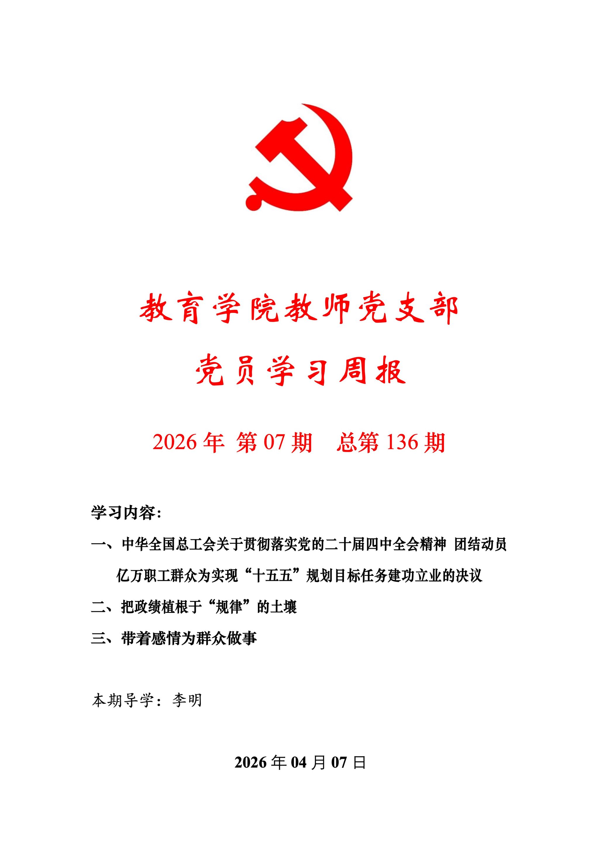 教育学院教师党支部党员学习周报(2026年第7期)