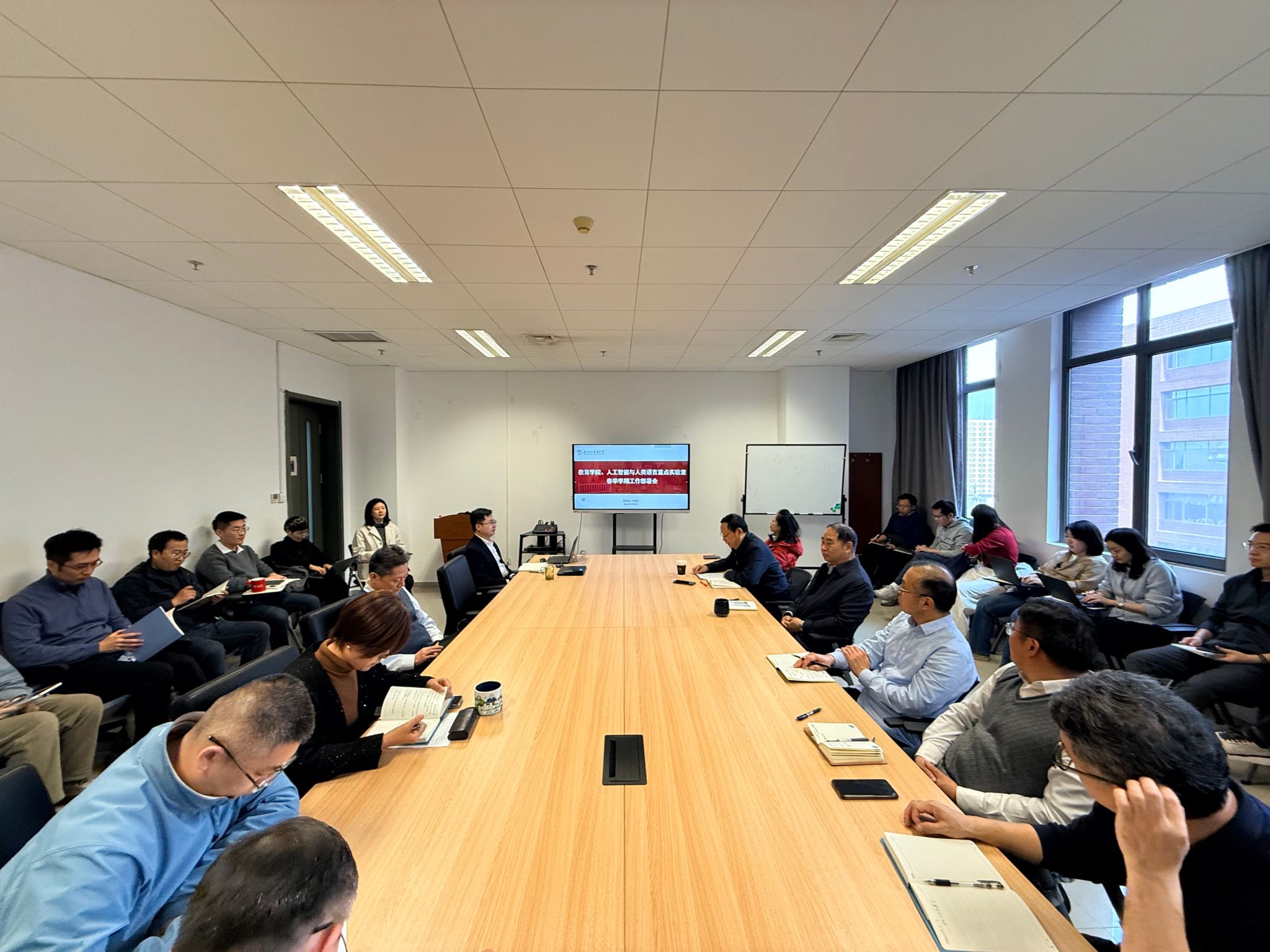 2026年3月3日,北京外国语大学教育学院、人工智能与人类语言重点实验室召开了2026年春季学期工作部署会。学院党政领导班子成员及全体教职工参会。会议由党总支副书记、组织员滕岑主持。