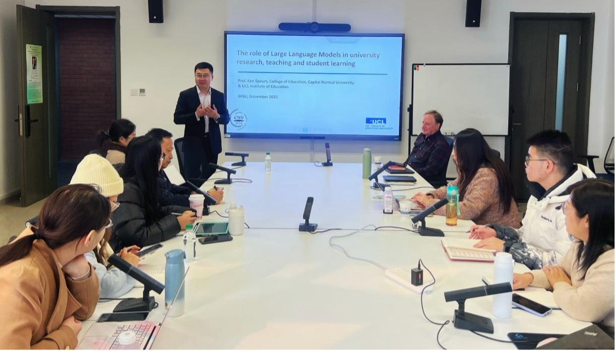 2025年11月5日,北京外国语大学教育学院“全球教育讲堂”特邀伦敦大学学院(UCL)教育学院Ken Spours教授,为学院师生带来一场题为“The role of Large Language Models in university research, teaching and student learning”的学术讲座。本次讲座学院党总支书记李佐文教授出席,由学院常务副院长苑大勇教授主持,学院众多硕博研究生及教师积极参与。
